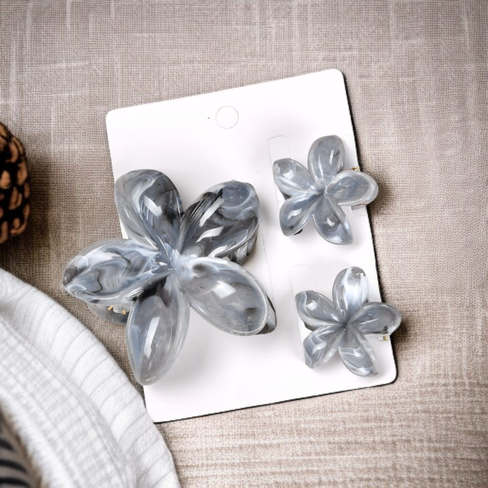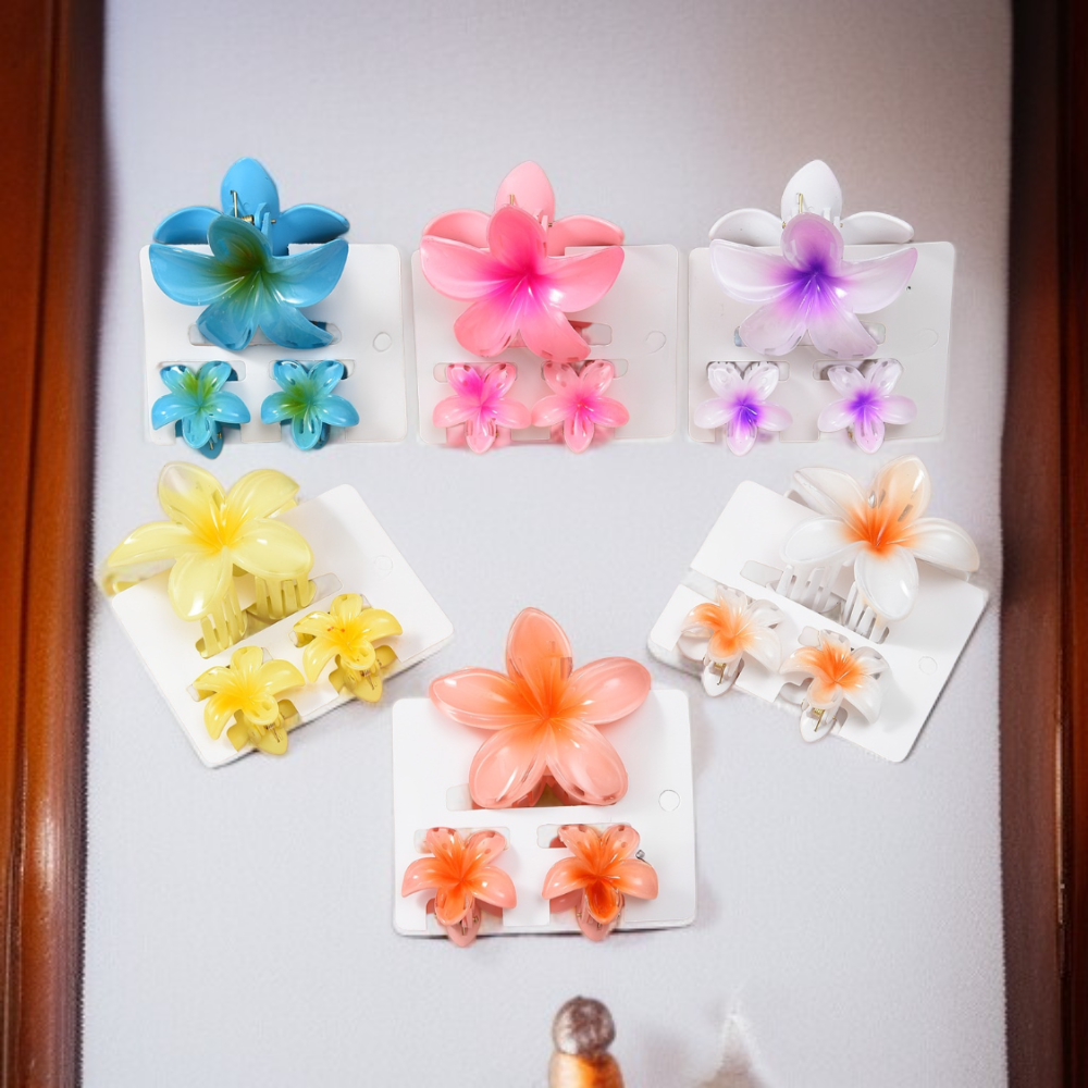 18件套雞蛋花抓夾漸變花朵馬尾鯊魚髮夾PC材質